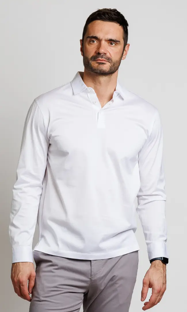 Mercerized Cotton A blend of supreme comfort and subtle elegance. Crafted from specially treated mercerized cotton with a silky finish, this rich green polo offers the perfect balance between casual and professional. The fabric is highly durable, retains its shape, and keeps its color intensity wash after wash.
