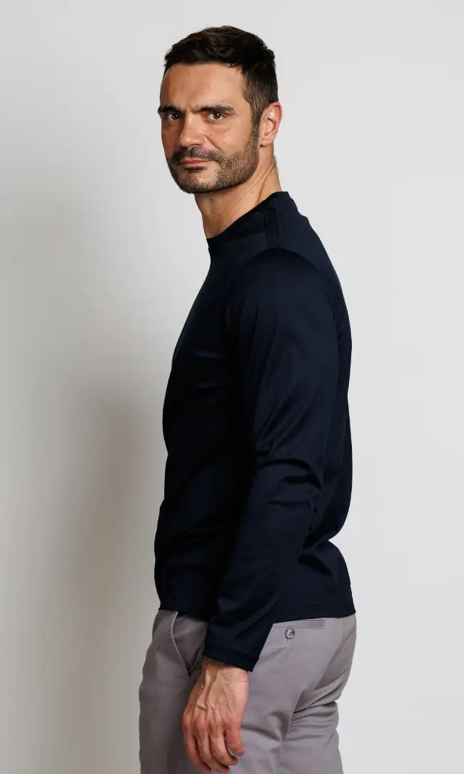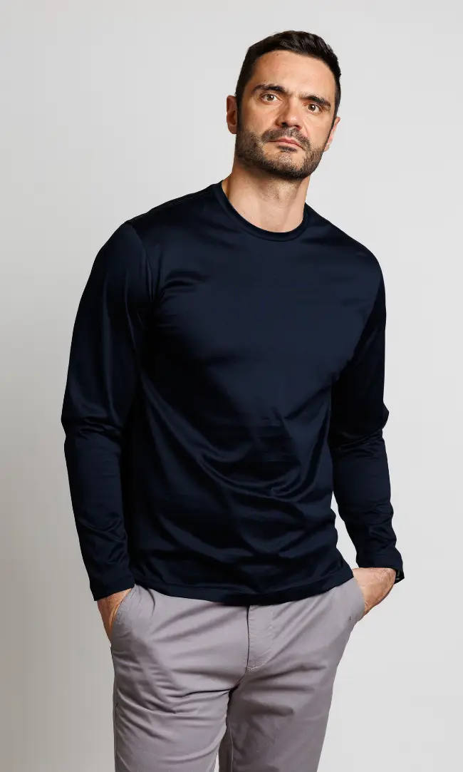 Premium Navy Polo Shirt – Mercerized Cotton A blend of supreme comfort and subtle elegance. Crafted from specially treated mercerized cotton with a silky finish, this rich green polo offers the perfect balance between casual and professional. The fabric is highly durable, retains its shape, and keeps its color intensity wash after wash.
