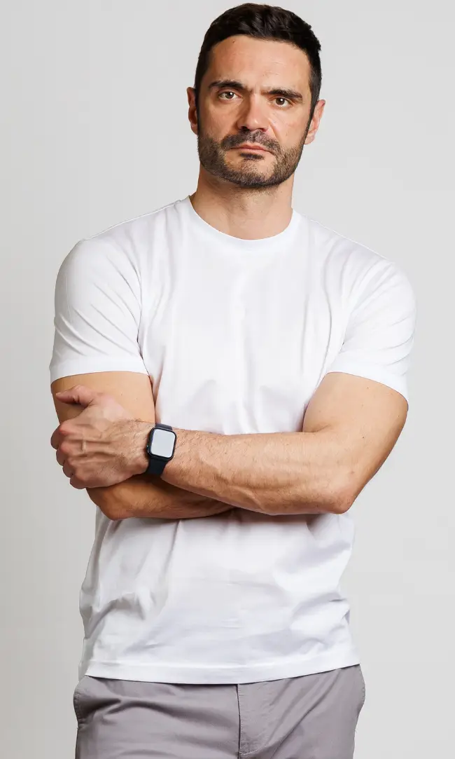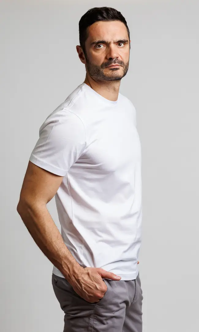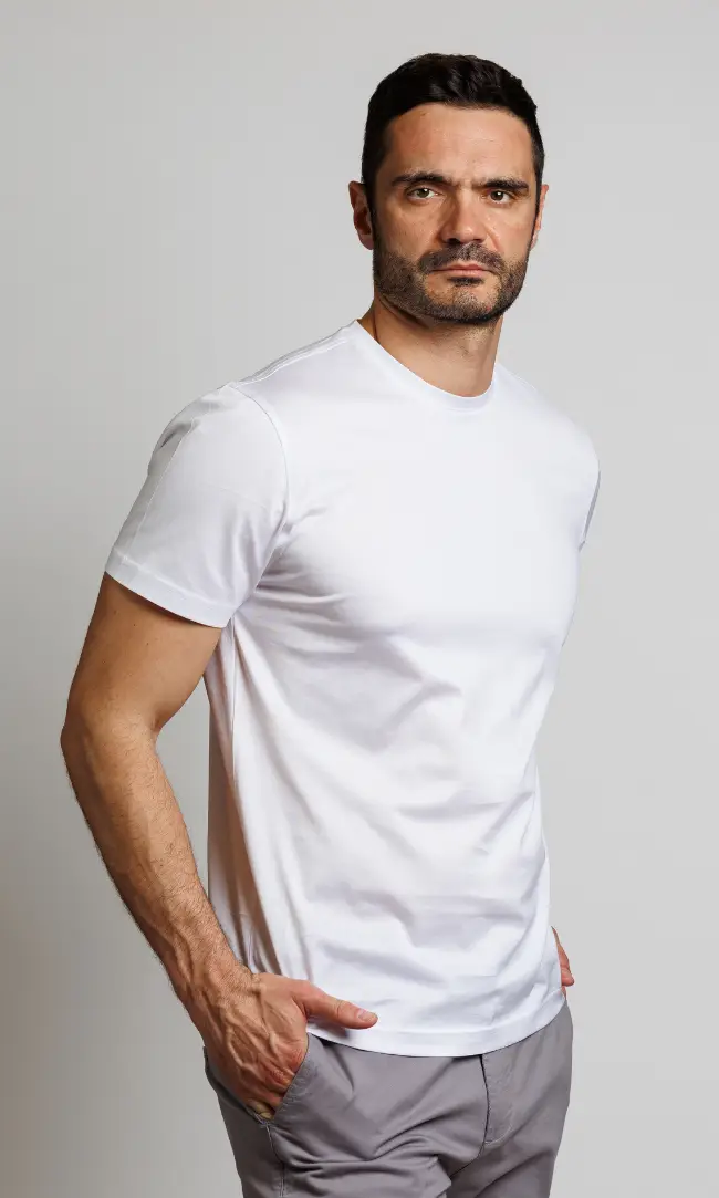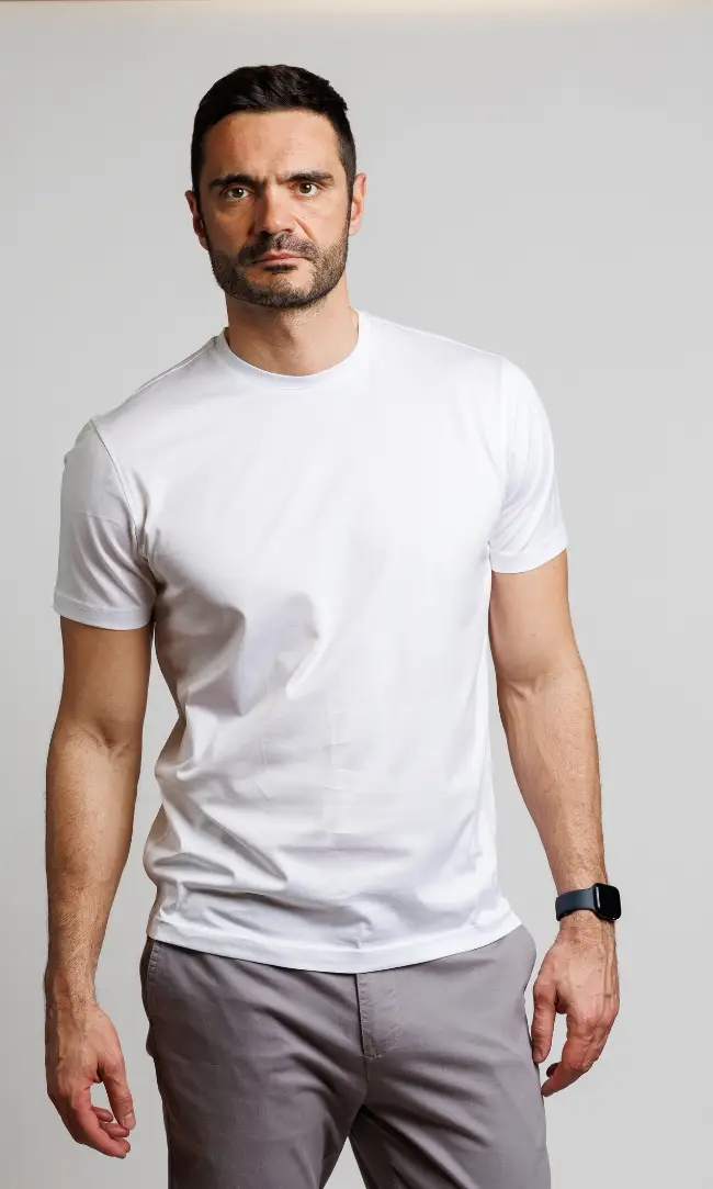 Premium WHITE Cotton Tee – The perfect blend of comfort and a modern silhouette. Crafted from the finest cotton, it’s ideal for layering or as a standalone piece for a sharp, casual look.