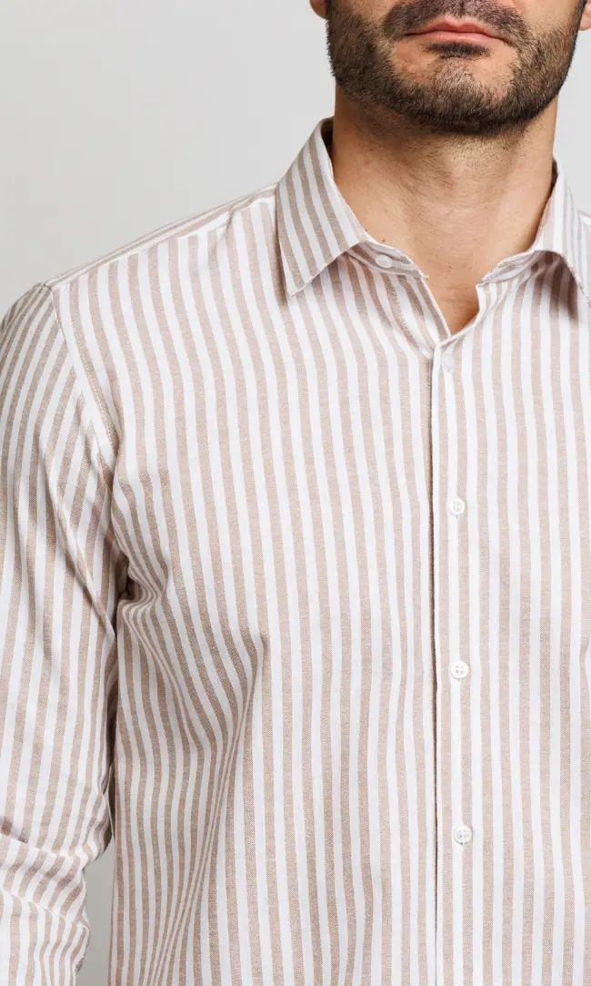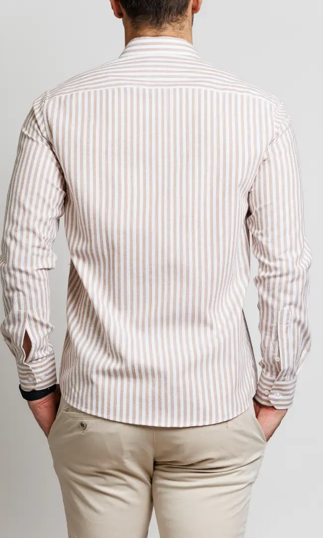 Lanena košulja na pruge – Spoj letnje lakoće i klasičnog stila. Izrađena od 100% prirodnog lana, ova košulja je savršen izbor za vrele dane kada želite da izgledate sređeno, a da vam bude maksimalno udobno.