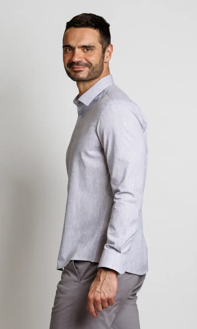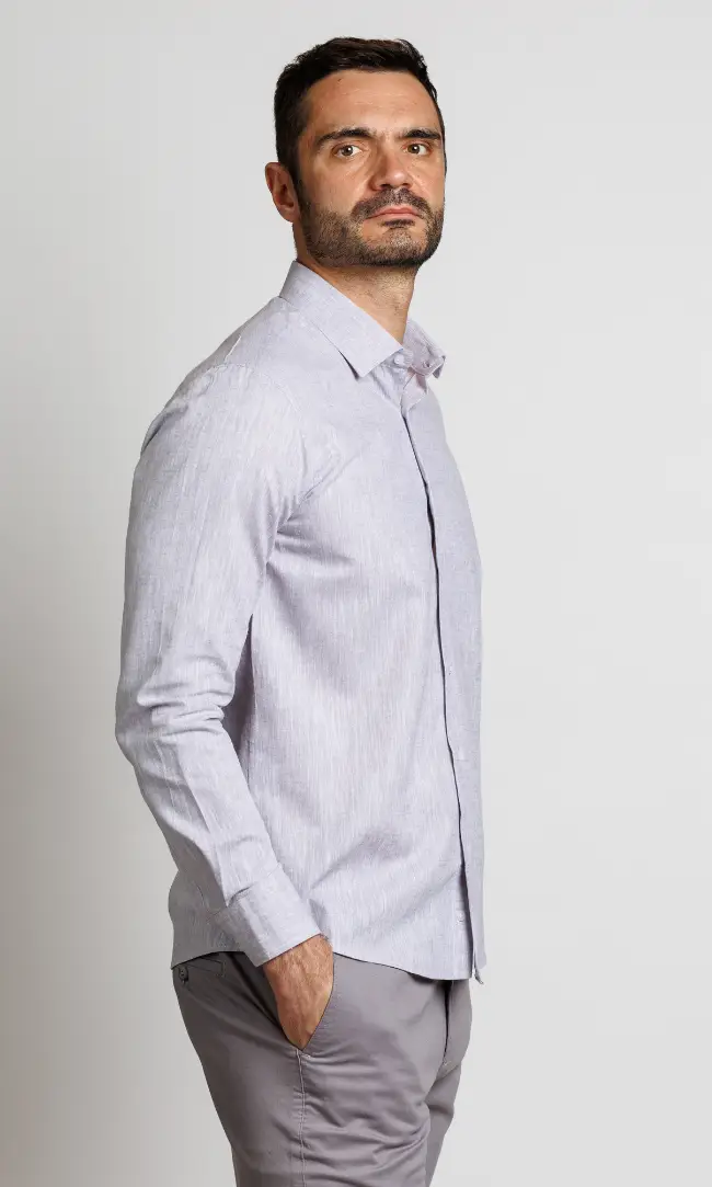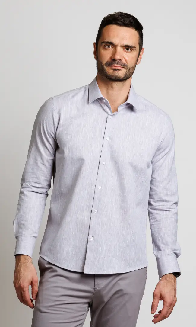 Moderni minimalizam Izrađena od 100% prirodnog lana, ova siva košulja spaja sirovu lepotu materijala sa urbanom elegancijom. Savršen izbor za muškarca koji traži maksimalnu udobnost i prefinjen, neutralan izgled tokom letnjih meseci.
