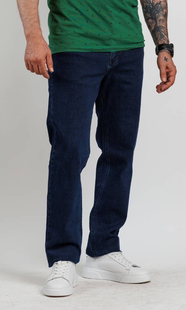 ATRIUM FASHION predstavlja muške farmerke u tamnom teget tonu. Sa klasičnim, blago komfornim krojem (Regular Fit), ovaj model je savršena osnova za smart-casual i poslovni stil. Izrađene su od mekog džinsa sa elastinom, pružajući eleganciju i udobnost.
