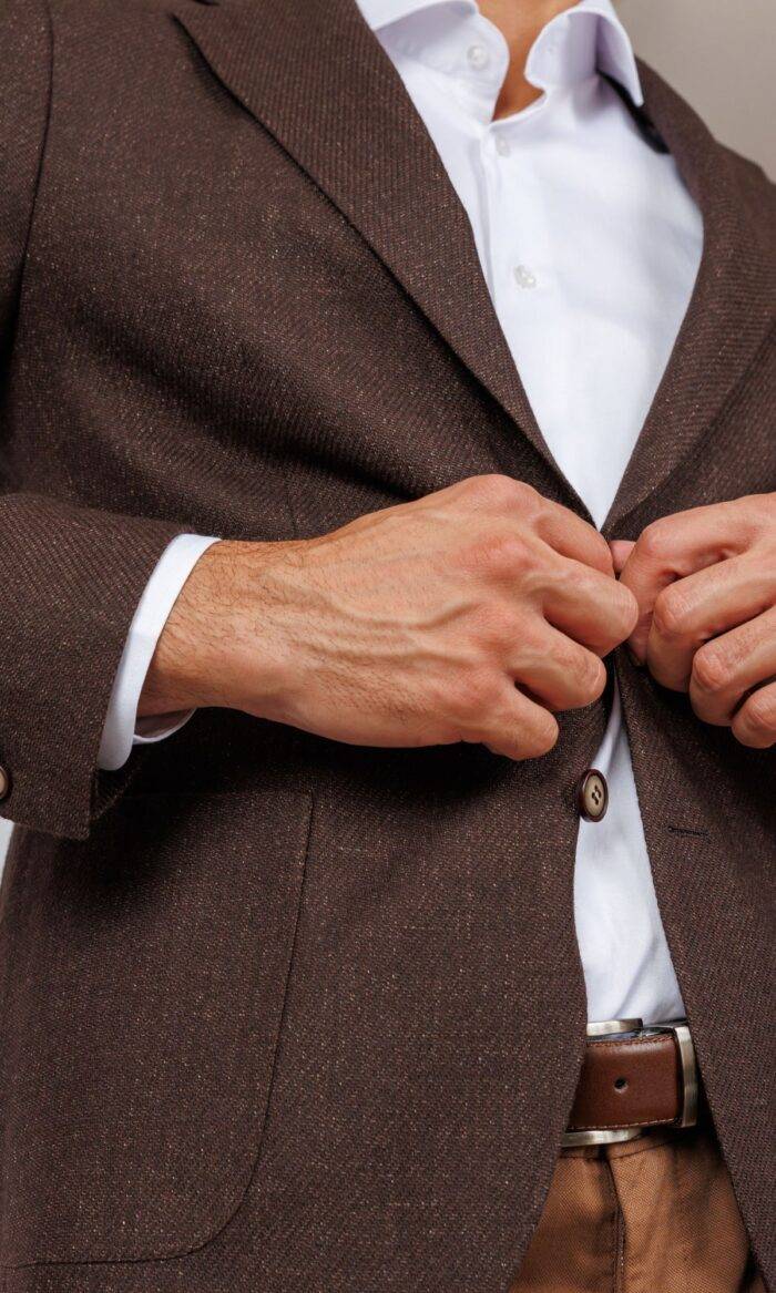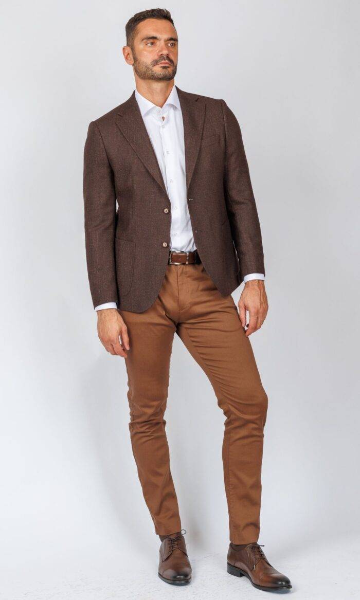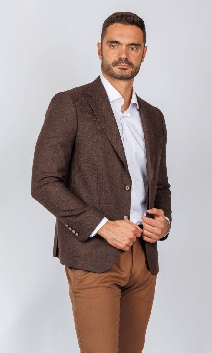 ATRIUM FASHION vam donosi Braon Slim Fit sako sa suptilnom teksturom. Njegova bogata braon nijansa unosi toplinu i prefinjenost, čineći ga idealnim izborom za smart casual i jesenje/zimske kombinacije. Slim Fit kroj i dva dugmeta obezbeđuju moderan i udoban izgled.