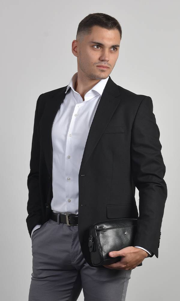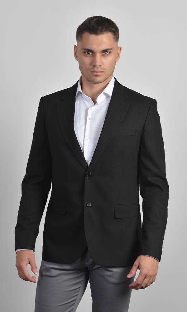 ATRIUM FASHION vam predstavlja Klasični Crni Slim Fit sako, neprolazan komad za formalne i poslovne prilike. Dizajn sa dva dugmeta i besprekoran kroj garantuju eleganciju i sofisticiranost. Savršena investicija za svaki muški garderober koja osigurava uredan i moćan izgled.