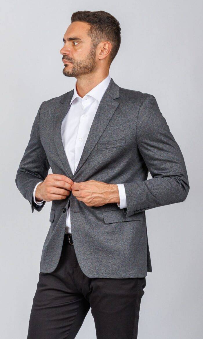 Ovaj grafitno sivi sako iz kolekcije ATRIUM FASHION je esencija moderne elegancije. Tamna nijansa i fina, melirana tekstura daju mu dubinu i ozbiljnost. Savršen je za poslovne sastanke i večernje događaje, garantujući oštar i profesionalan izgled.