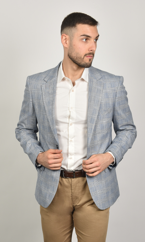 Ovaj svetlo plavi karirani sako iz kolekcije ATRIUM FASHION donosi suptilnu eleganciju sa izraženom teksturom, idealnom za prolećne i letnje kombinacije. Diskretni, tonalni karirani dezen i svetla nijansa plave čine ga savršenim za smart-casual izgled i svečanije dnevne događaje.