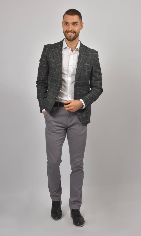 Ovaj sako iz kolekcije ATRIUM FASHION donosi odvažan, ali prefinjen stil. Tamno siva boja obogaćena je izraženim kariranim dezenom u svetlim linijama. Savršen je za muškarce koji žele da istaknu svoju modnu svest u poslovnim ili smart-casual prilikama.