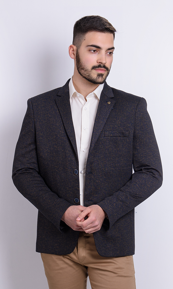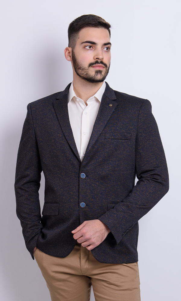 Ovaj tamno braon sako iz kolekcije ATRIUM FASHION donosi spoj klasične teget-braon baze i izražene, vunaste teksture u kontrastnim tonovima. Idealan je za jesenje i zimske smart-casual kombinacije, pružajući topao izgled i osećaj.