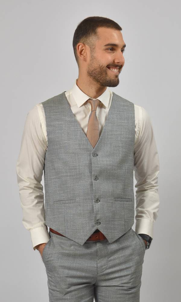Bezvremensko muško trodelno odelo brenda Atrium Fashion u svetlo zelenoj boji. Besprekorna izrada i strukirani prsluk za profesionalan i elegantan izgled koji uliva poverenje.